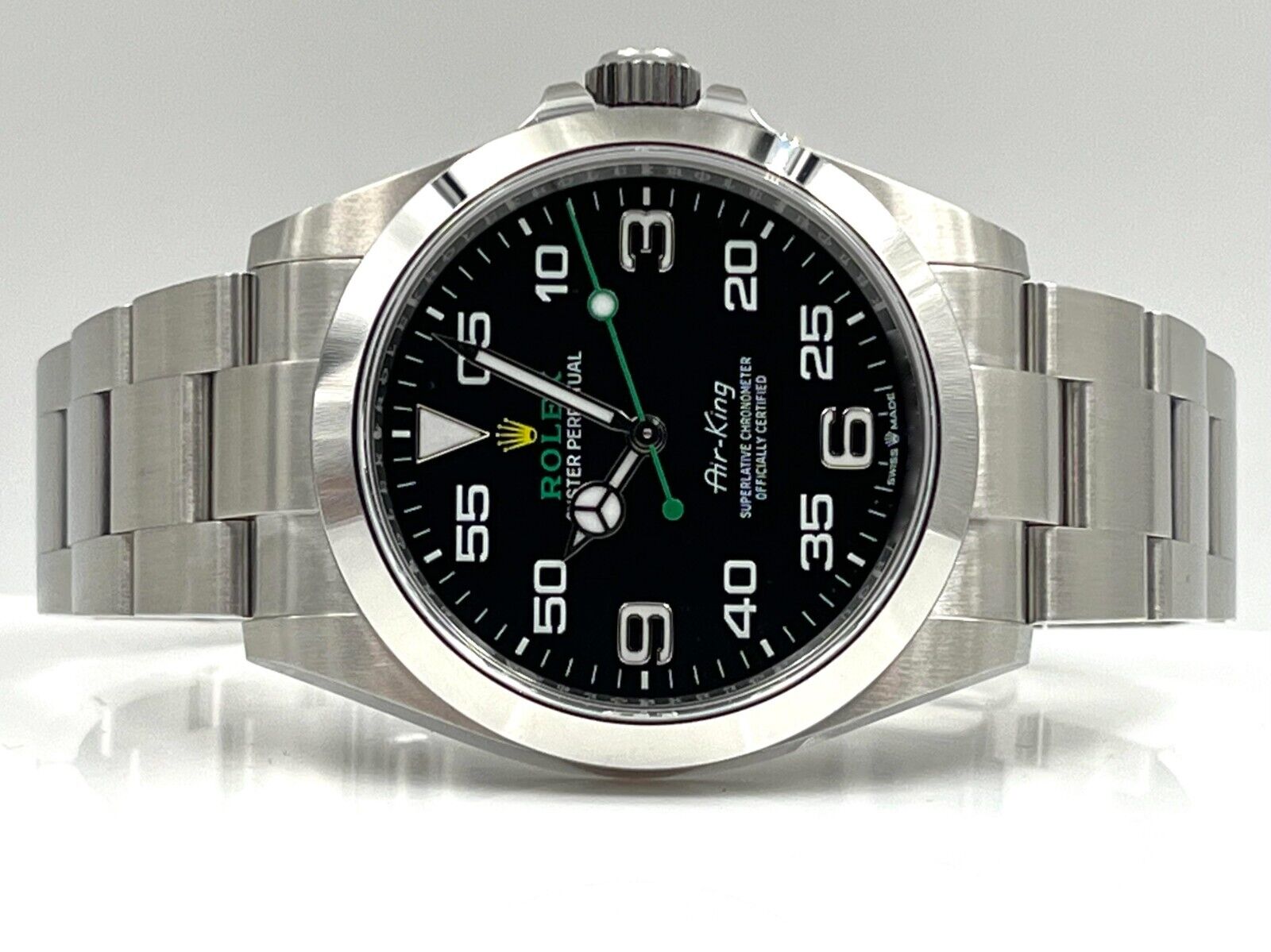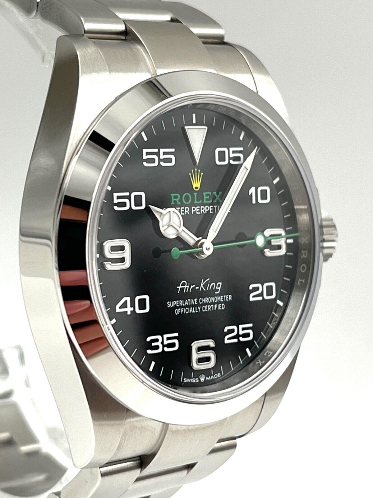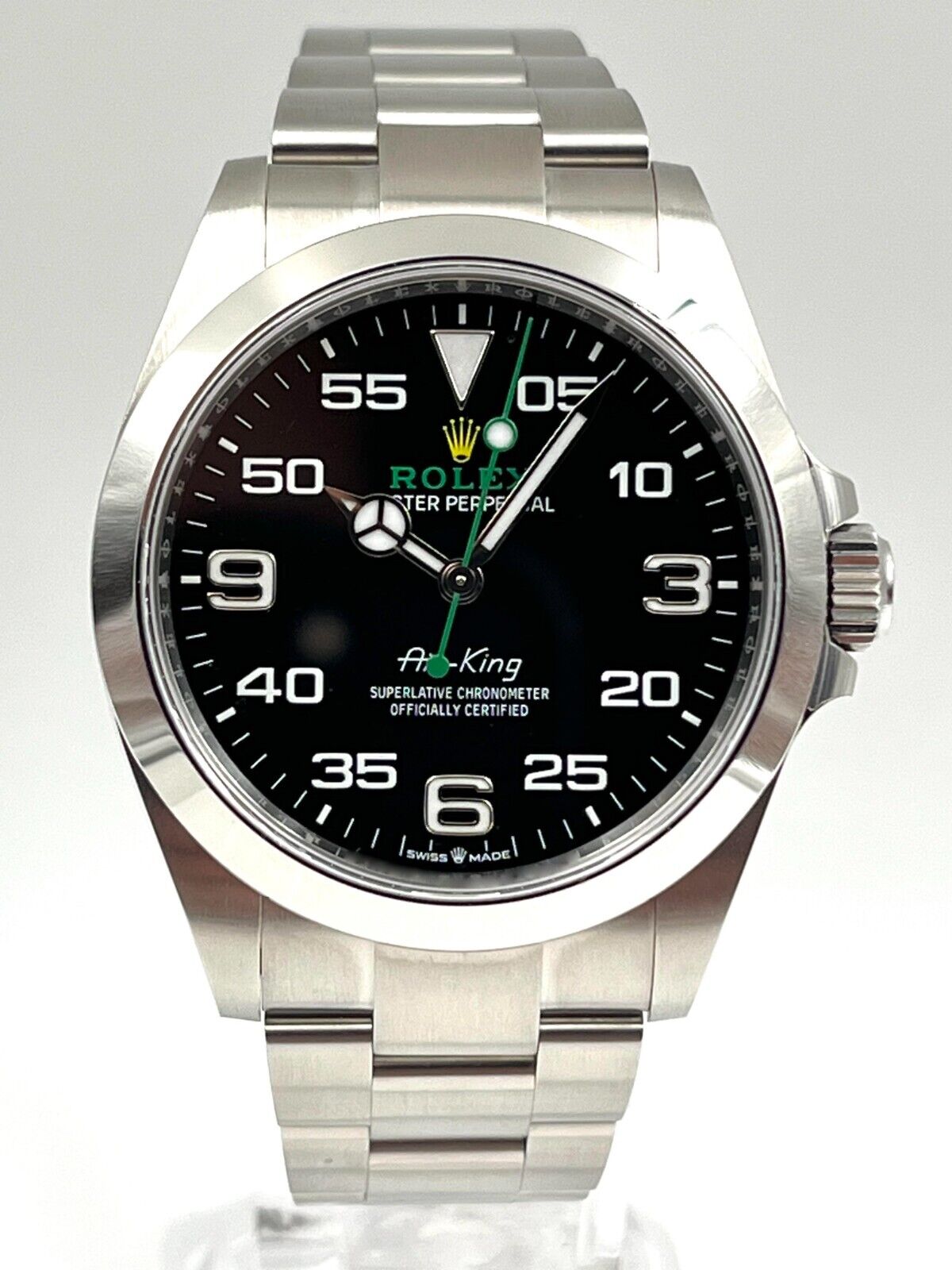 Introducing the Rolex Airking 126900 (Year: 2024) – a testament to timeless design and precision. This piece features a black dial, steel bracelet, and 40 mm steel case, making it a statement piece that effortlessly captures attention.