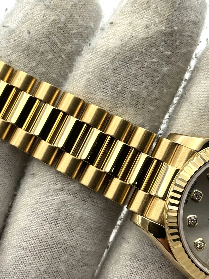 All Rolex watches listed on our site have been tested by a Rolex Service Provider who holds a Rolex parts account. If a Rolex watch is not operating within Rolex specification, we will have it serviced prior to listing for sale, utilizing Rolex replacement parts as needed.