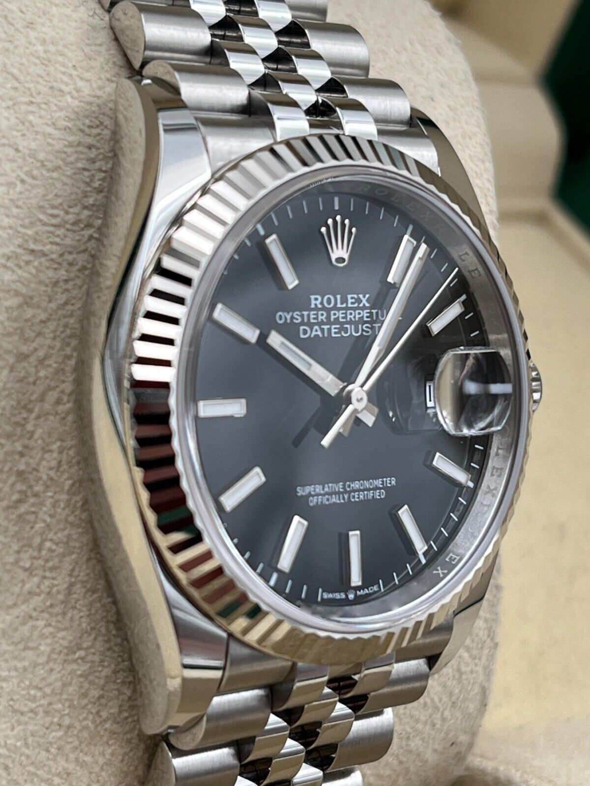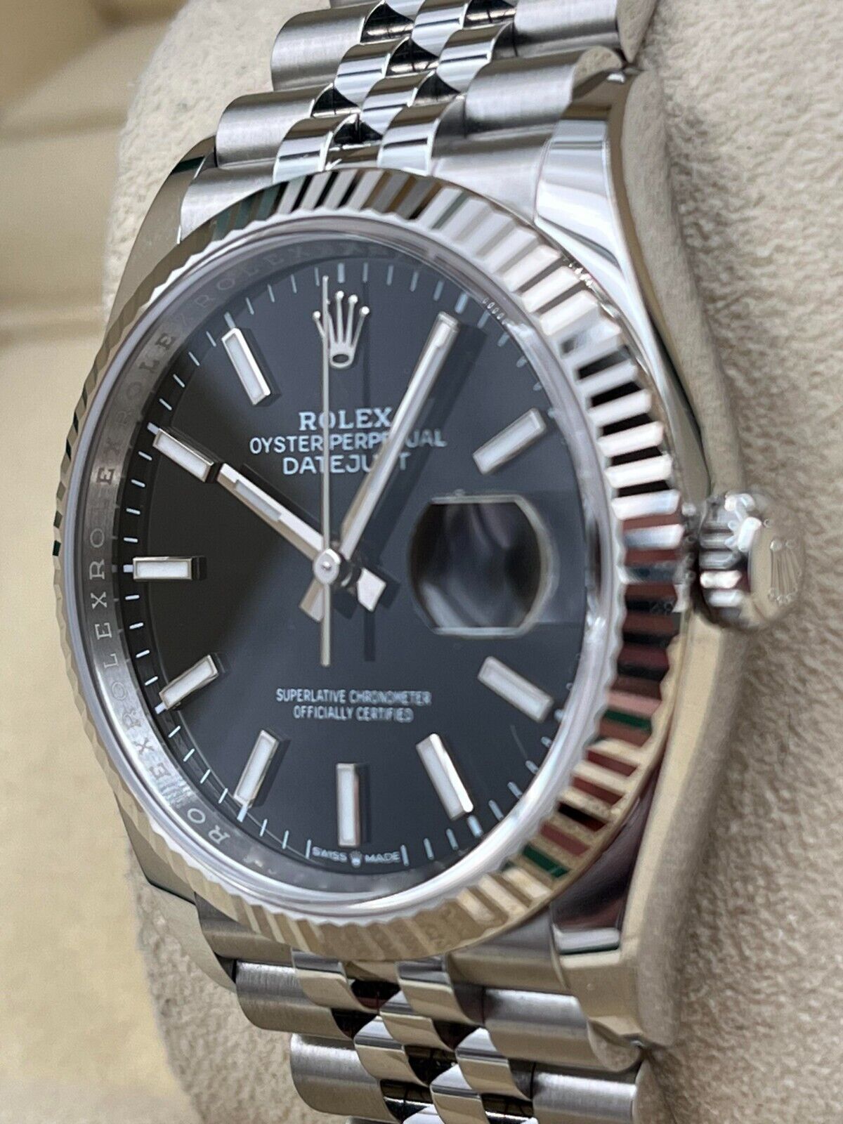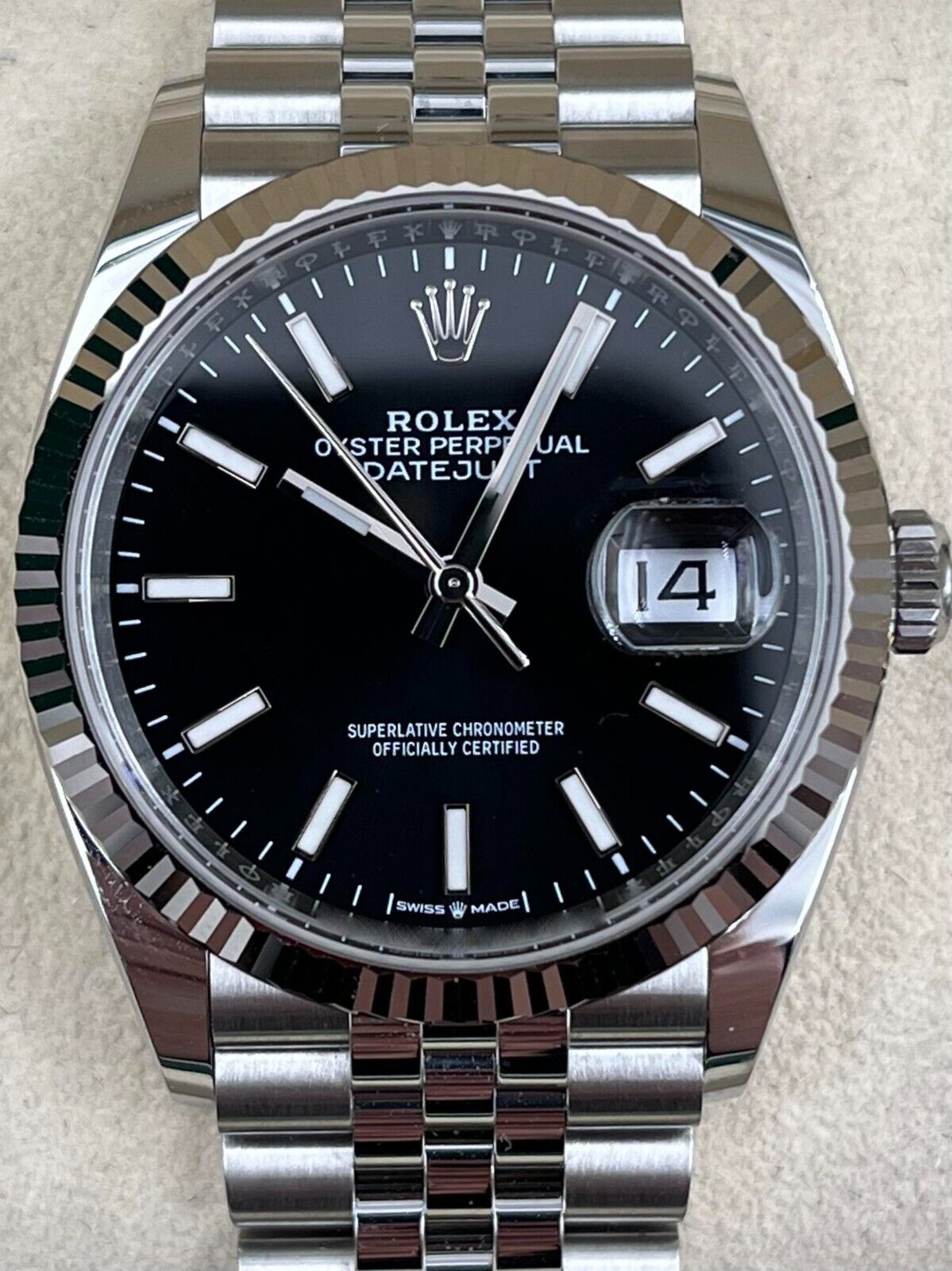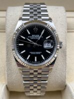 Introducing the Rolex Datejust 36 126234 (Year: 2024) – a testament to timeless design and precision. This piece features a black dial, stainless steel bracelet, and 36 mm steel case, making it a statement piece that effortlessly captures attention.