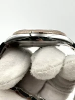 The chocolate dial is rich and warm, with luminescent Everose gold hour markers and hands that ensure legibility in all lighting conditions. The simple yet elegant index layout maintains a clean look, while the date window at 3 o’clock, magnified by Rolex’s signature Cyclops lens, adds functionality to this timeless design.