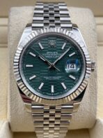 Introducing the Rolex Datejust 41 126334 (Year: 2022) – a testament to timeless design and precision. This piece features a green dial, two tone white gold/stainless steel bracelet, and 41 mm steel case, making it a statement piece that effortlessly captures attention.