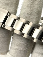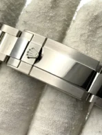The watch is paired with a three-link Oyster bracelet, crafted from Oystersteel for durability and comfort. Featuring the Oysterclasp with an Easylink comfort extension system, the bracelet ensures a secure fit and effortless adjustability.