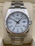 Introducing the Rolex Datejust 41 126334 (Year: 2024) – a testament to timeless design and precision. This piece features a white dial, stainless steel bracelet, and 41 mm steel case, making it a statement piece that effortlessly captures attention.