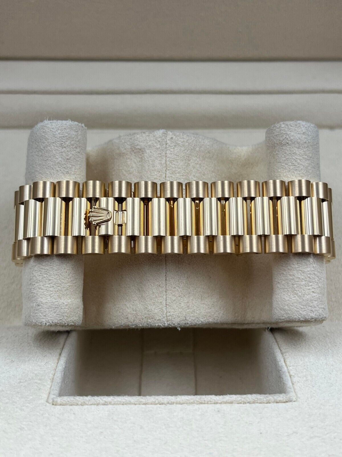 Introducing the Rolex Day-Date 228238 (Year: 2023) – a testament to timeless design and precision. This piece features a champagne dial, yellow gold bracelet, and 40 mm yellow gold case, making it a statement piece that effortlessly captures attention.