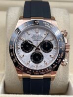 Introducing the Rolex Daytona 116515LN (Year: 2023) – a testament to timeless design and precision. This piece features a silver dial, rubber bracelet, and 40 mm rose gold case, making it a statement piece that effortlessly captures attention.