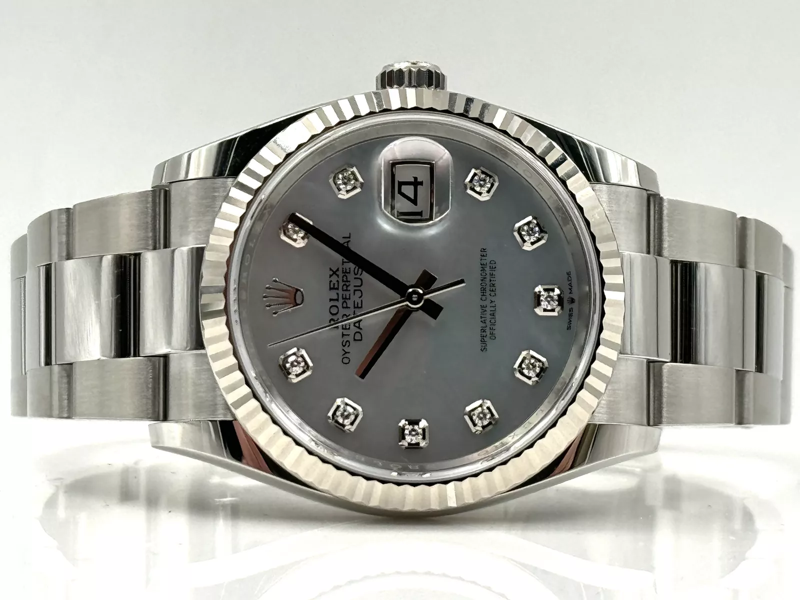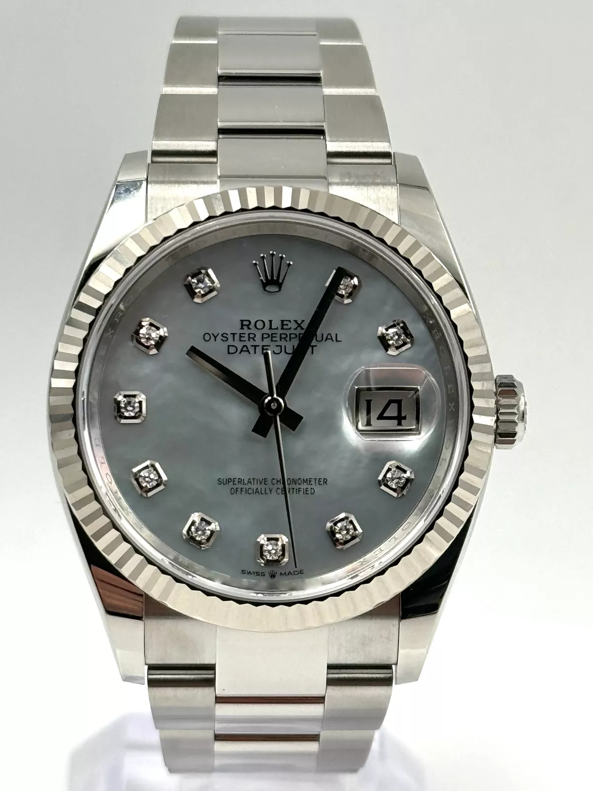 Fluted Bezel Mother of Pearl Diamond Dial Stainless Steel Oyster Bracelet Box & Papers 2024