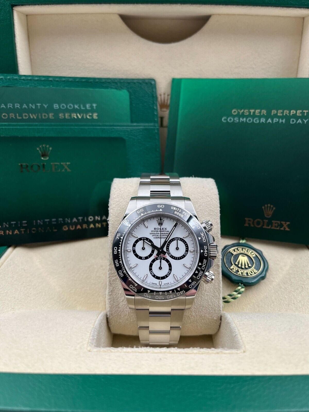 Introducing the Rolex Daytona 126500LN (Year: 2024) – a testament to timeless design and precision. This piece features a white dial, steel bracelet, and 40 mm steel case, making it a statement piece that effortlessly captures attention.