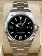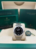 Introducing the Rolex Explorer I 224270 (Year: 2024) – a testament to timeless design and precision. This piece features a black dial, steel bracelet, and 40 mm steel case, making it a statement piece that effortlessly captures attention.
