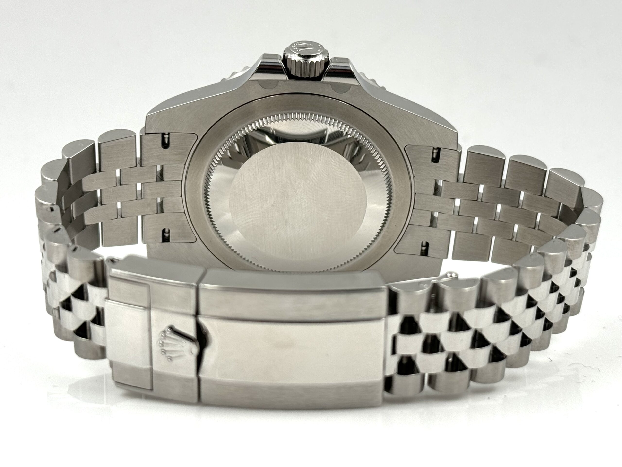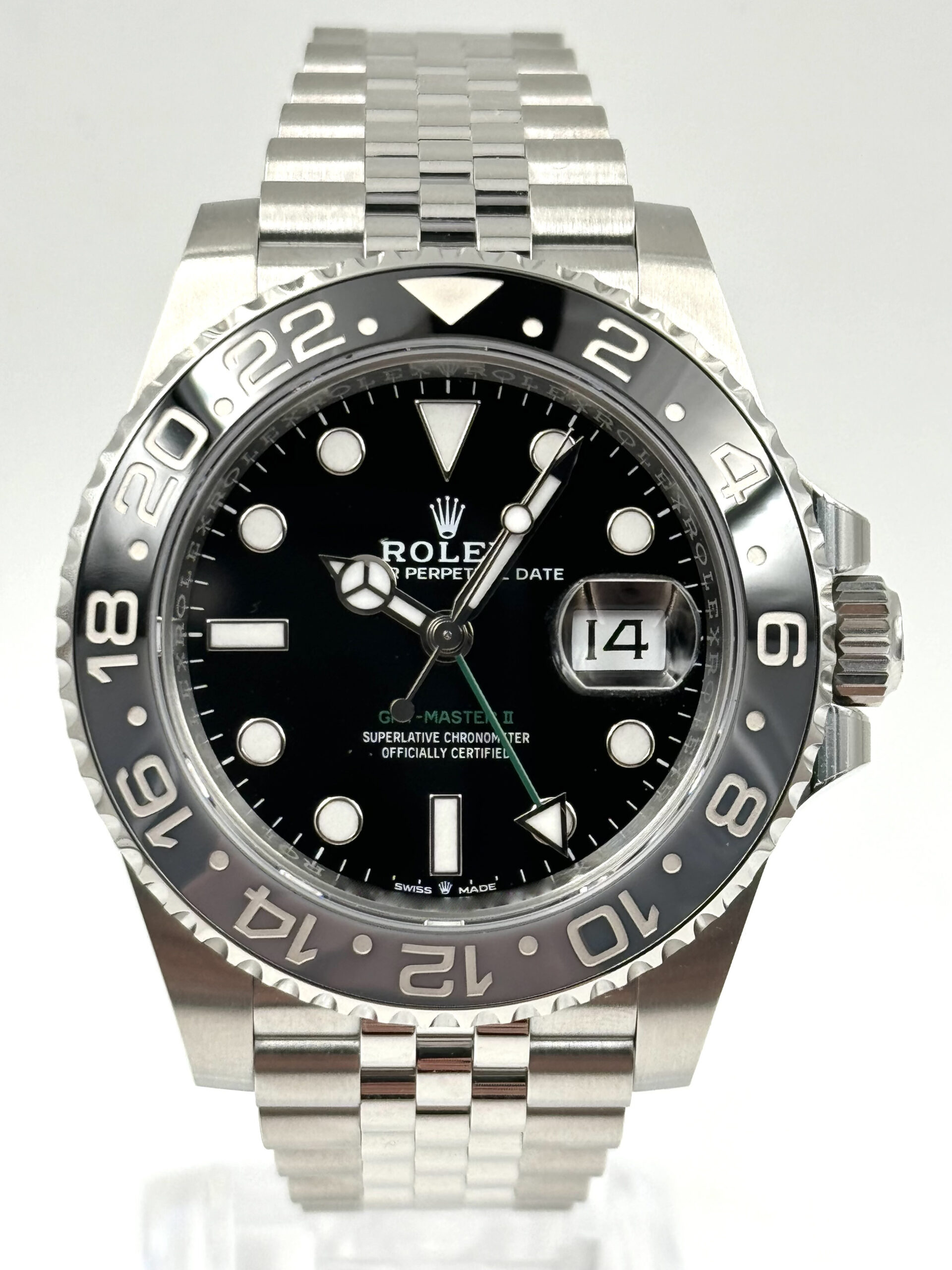 The 126710GRNR is paired with Rolex’s iconic Jubilee bracelet, renowned for its comfort and flexibility. The Jubilee bracelet adds a touch of luxury to the GMT-Master II. The five-piece link design and concealed clasp ensure a seamless integration with the watch case.