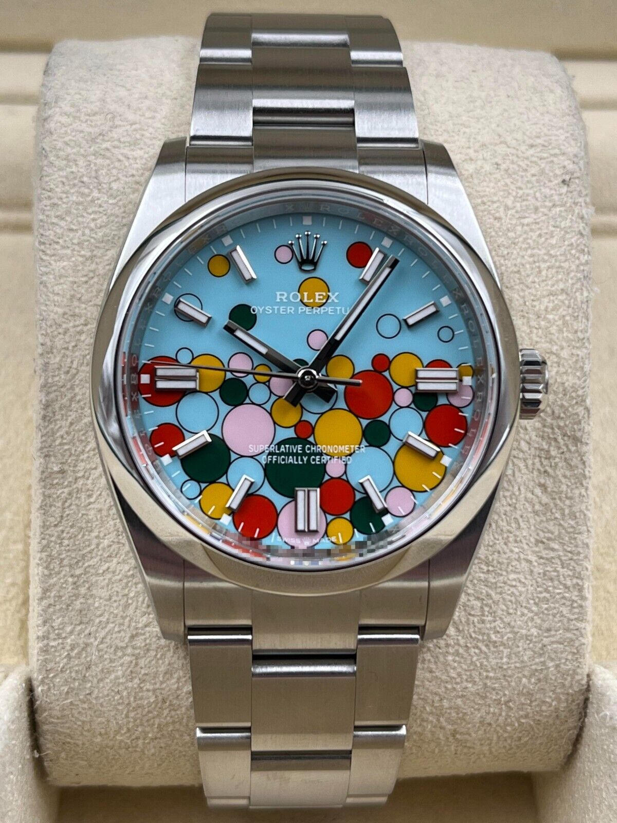 All Rolex watches listed on our site have been tested by a Rolex Service Provider who holds a Rolex parts account. If a Rolex watch is not operating within Rolex specification, we will have it serviced prior to listing for sale, utilizing Rolex replacement parts as needed.