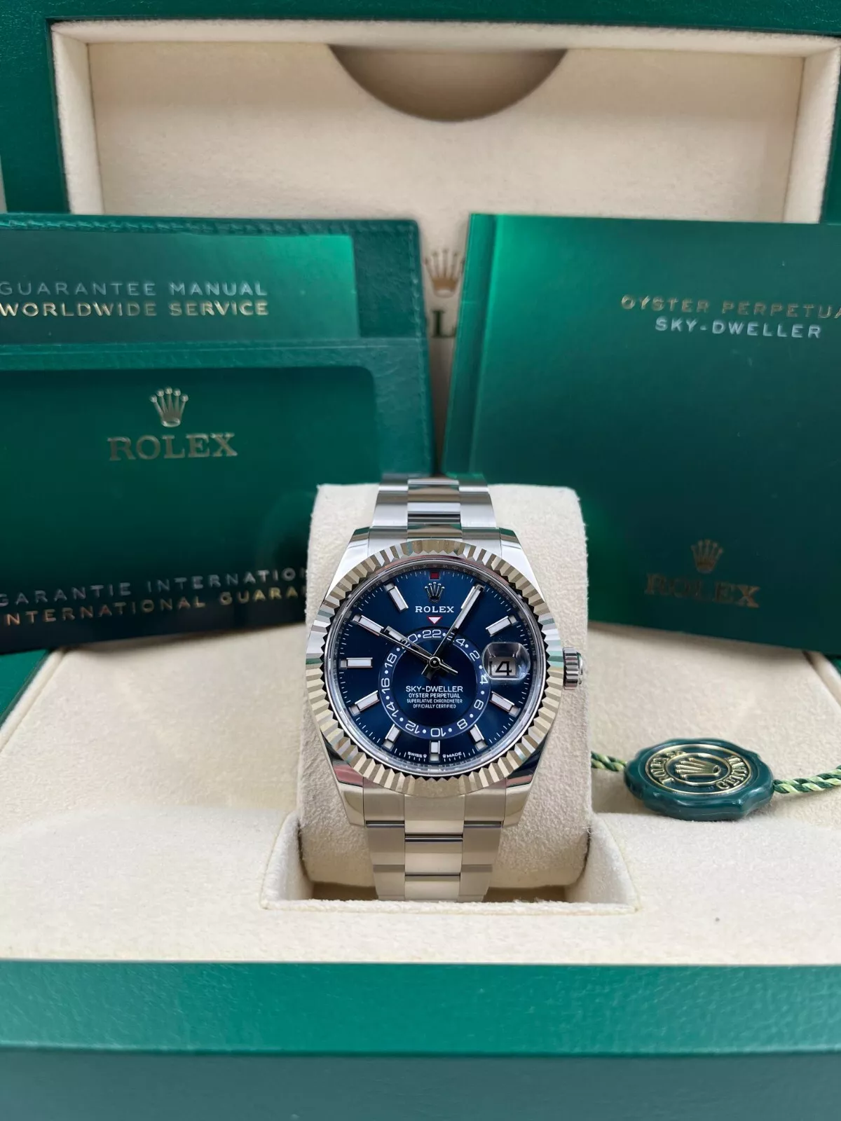 Introducing the Rolex Sky-Dweller 336934 (Year: 2024) – a testament to timeless design and precision. This piece features a blue dial, stainless steel bracelet, and 42 mm steel case, making it a statement piece that effortlessly captures attention.